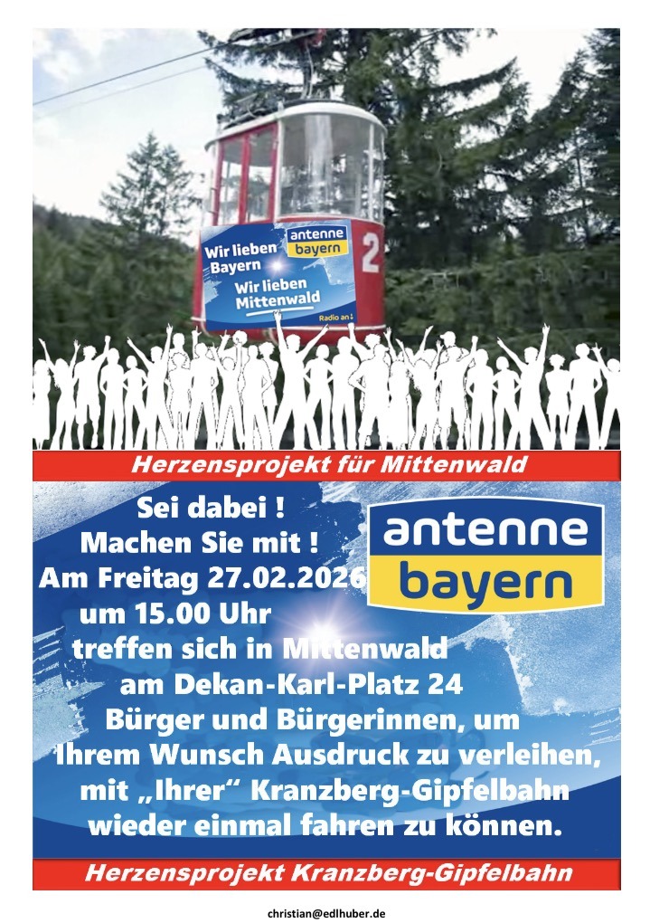Die Aktion findet am Freitag, 27.02.206 15:00 Uhr am Dekan-Karl-Platz 24, 82481 Mittenwald statt. Herr Edlhuber wird ebenfalls vor Ort sein.